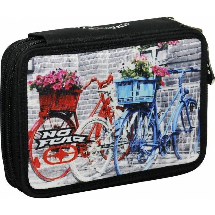 Σχολική κασετίνα γεμάτη, με 2 θήκες που κλείνουν με φερμουάρ.
