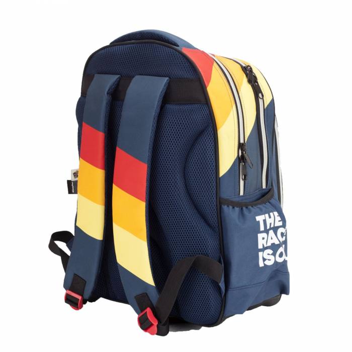 Δύο κεντρικές θέσεις και μία επιπλέον μπροστινή Ανατομική πλάτη Πλαϊνές θήκες για παγούρια Ενισχυμένοι ιμάντες πλάτης Ενισχυμένη λαβή χειρός.