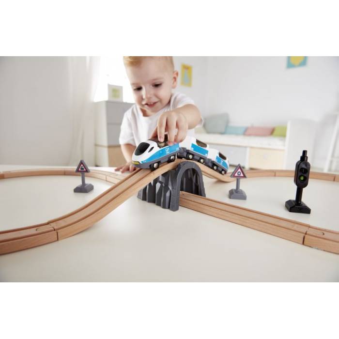 Κόκκινο σημαίνει σταματάω, πράσινο σημαίνει ξεκινάω!Διδάξτε τα παιδιά σχετικά με τα σήματα ασφαλείας, με αυτό το σετ τρένου.Διαστάσεις προϊόντος: 107x46x10cm (ΜxΠxΥ).