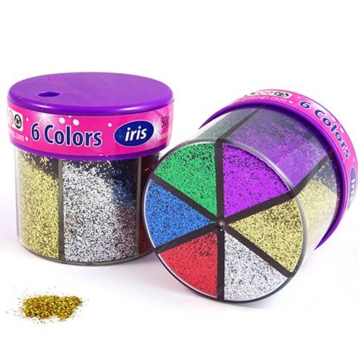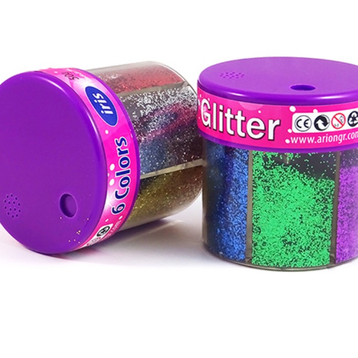 Χρυσόσκονη Glitter αλατιέρα σε συσκευασία 50gr, που περιέχει 6 διαφορετικά χρώματα.