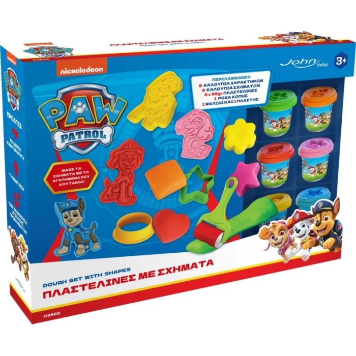 Μάθε τα σχήματα με τα κουτάβια! Σετ Πλαστελίνης με καλούπια από τα αγαπημένα σου κουτάβια και από γεωμετρικά σχήματα.Περιεχόμενα: 6x56gr βαζάκια πλαστελίνης, 8 καλούπια χαρακτήρων, 1 μεγάλος πλάστης, 6 καλούπια σχήματα, 1 ψαλίδι, 1 pizza cutter