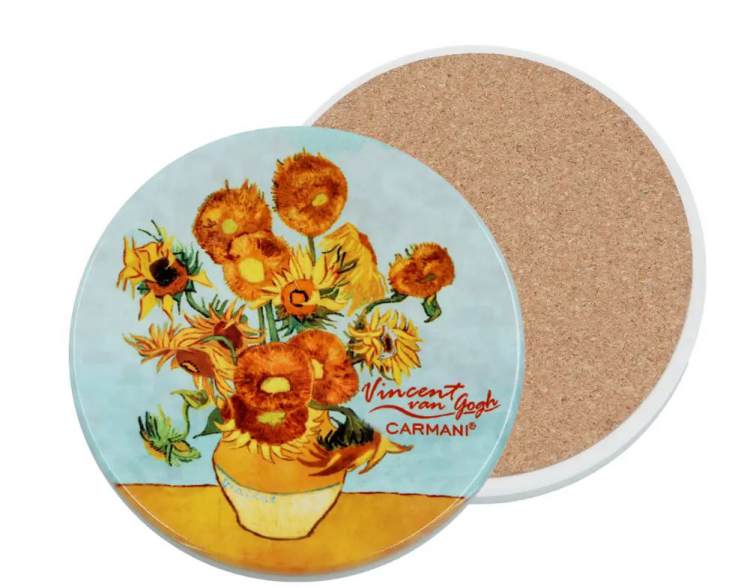 Κεραμικό σουπλά, στρογγυλό - V. van Gogh, Ηλιοτρόπια σε βάζο (CARMANI)