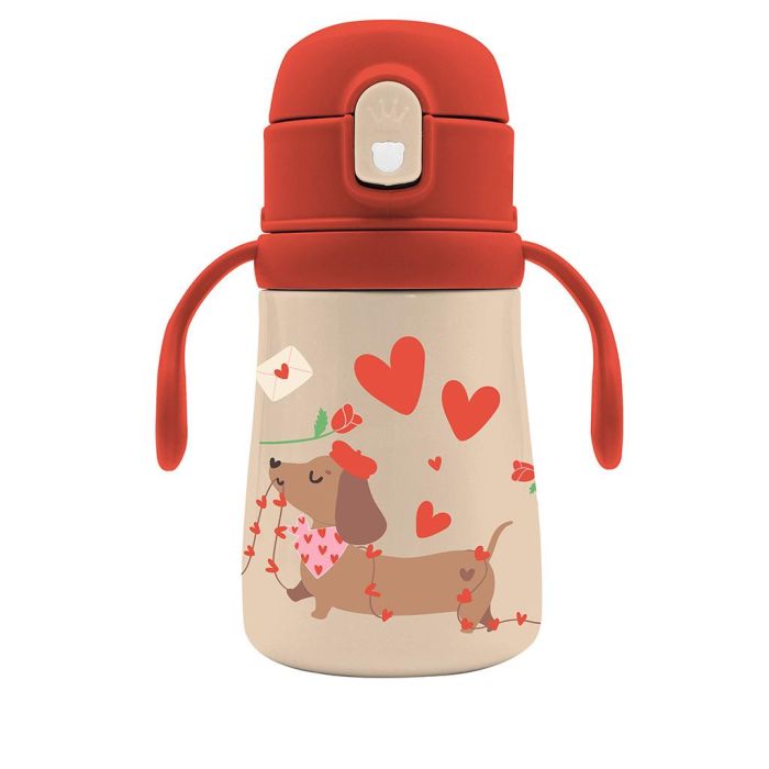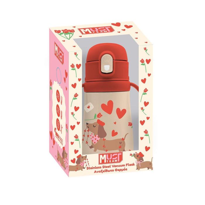 Παγούρι Θερμός Ανοξείδωτο Must Team Σκυλάκι 350 ml με χερούλια και καλαμάκι, ιδανικό για παιδιά, με πρακτικό σχεδιασμό που προσφέρει άνετο κράτημα και ευκολία στη χρήση. Διαθέτει διπλό τοίχωμα για διατήρηση της θερμοκρασίας (ζεστά ή κρύα ροφήματα για ώρες), ενσωματωμένο καλαμάκι και εργονομικά χερούλια για μικρά χεράκια. Κατάλληλο για το σχολείο, τις βόλτες και κάθε δραστηριότητα.