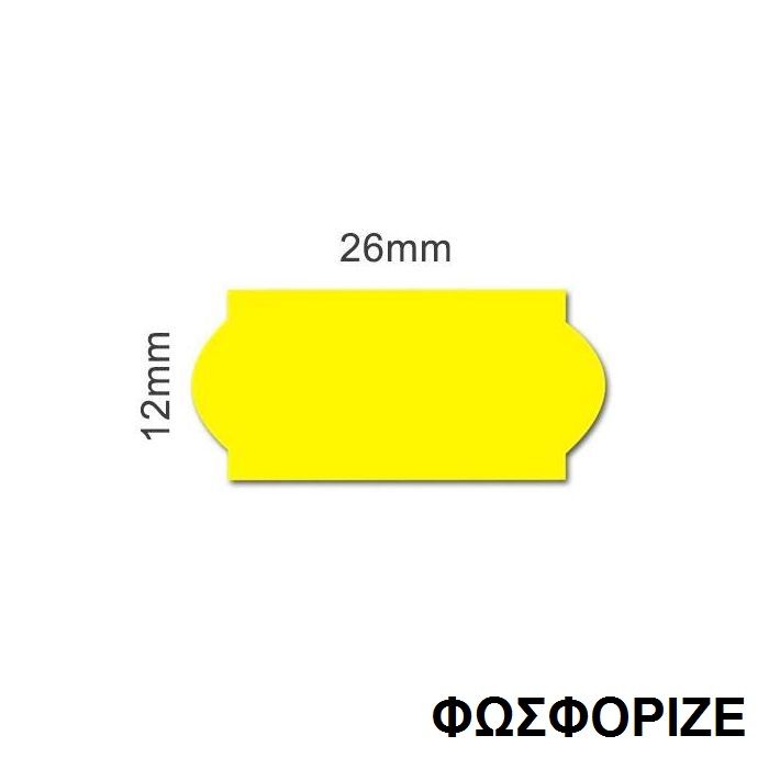 Ετικέτες ετικετογράφου φωσφοριζέ κίτρινες. Tο κάθε ρολό έχει 1000 τεμάχια. Διάσταση ετικέτας: 26x12mm. Στη συσκευασία περιλαμβάνονται 54 τεμάχια. (1 κιβώτιο)