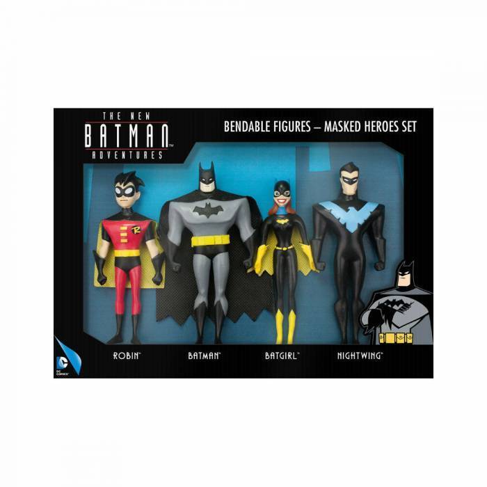 Collect all the new masked heroes bendable figures set which includes Batman, Robin, Batgirl and Nightwing from the new Batman Adventures series. You can bend and pose them as you desire.
