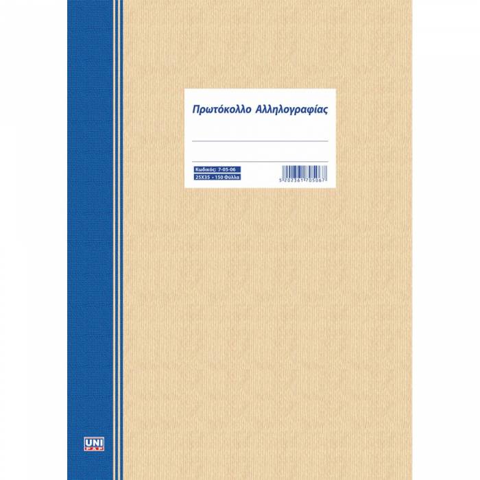 Unipap Πρωτόκολλο Αλληλογραφίας 25x35 150Φ 7-05-06