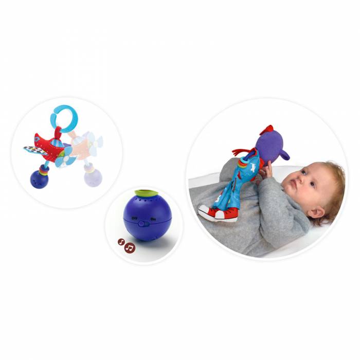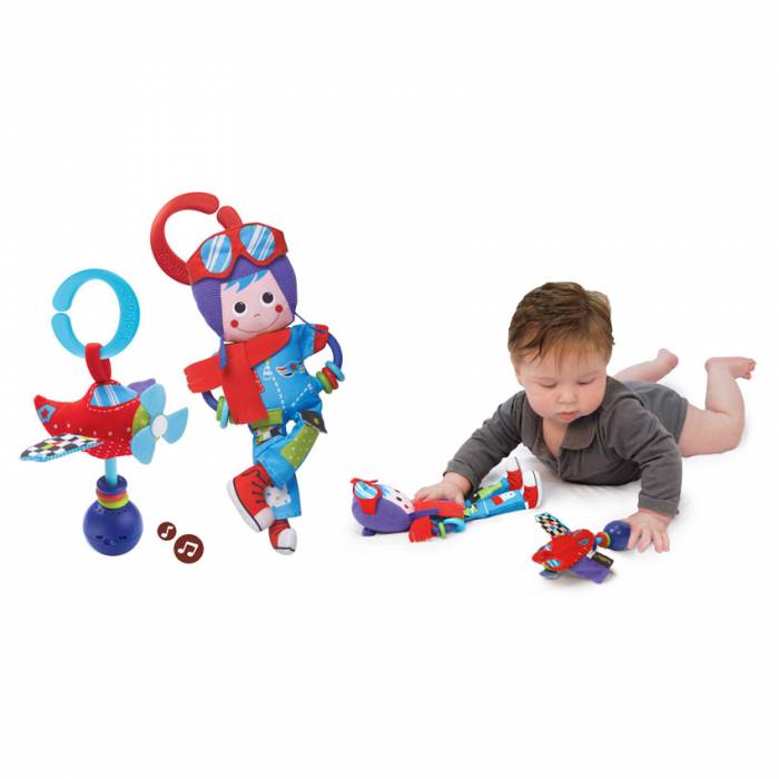 - Το αεροπλανάκι-κουδουνίστρα, το οποίο μπορεί να παράγει ηχητικά και μουσικά εφέ, διαθέτει πολύχρωμες χάντρες, αποτελείται από υλικά διαφορετικής υφής και έχει χερούλι που είναι εύκολο να κρατηθεί, ιδανικό για μικρά χεράκια.