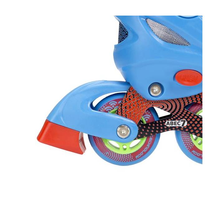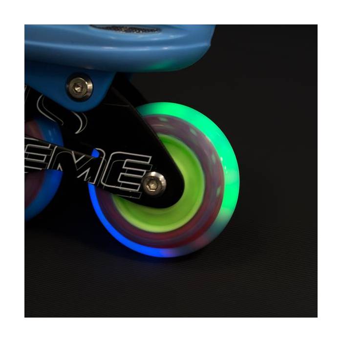 Το ημι-μαλακό παπούτσι παρέχει άνεση και μια σωστά επιλεγμένη στερέωση, όπως λουριά/δέστρες, πόρπη και λουρί velcro τα οποία εγγυώνται μέγιστη ασφάλεια ενώ οδηγείτε. Χρησιμοποιώντας ένα απλό σύστημα ρύθμισης, μπορείτε εύκολα και γρήγορα να προσαρμόσετε το μέγεθος στο πόδι του χρήστη. Τα LED φωτάκια που είναι τοποθετημένα στους εμπρός τροχούς δίνουν ένα θεαματικό αποτέλεσμα και απίστευτη χαρά στα παιδιά σας.