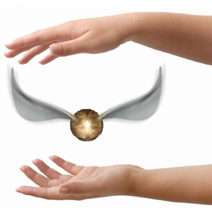 Quidditch, anyone? Amaze and astound your friends with the Harry Potter Mystery Flying Snitch. Using your hands, command the snitch to rise and fly around your body, flapping its wings as it soars - no diploma from Hogwarts required! Perfect for cosplay.