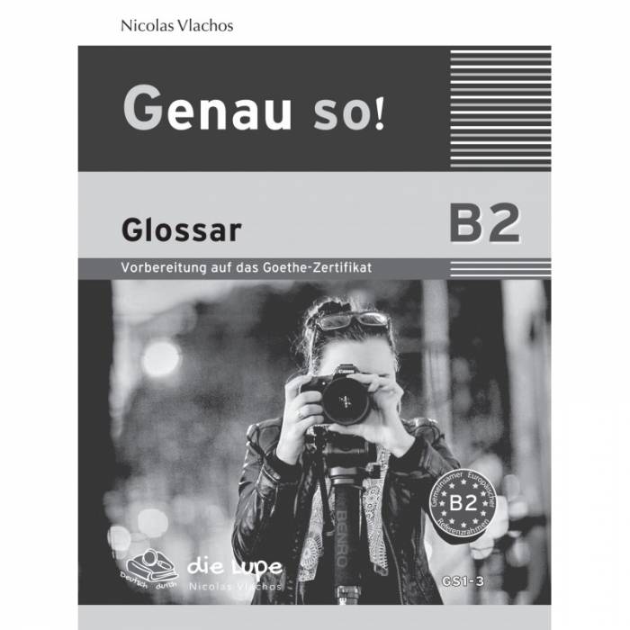 Το βιβλίο Genau so! Β2 Glossar περιέχει τη μετάφραση από τα Γερμανικά στα Ελληνικά του λεξιλογίου που θα βρείτε στο Kursbuch και στο Lehrerhandbuch.
