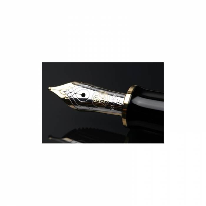 Το λογότυπο της εταιρείας κυριαρχεί στην κορυφή της πένας και η λέξη Pelikan έίναι χαραγμένη στο κεντρικό δακτυλίδι.