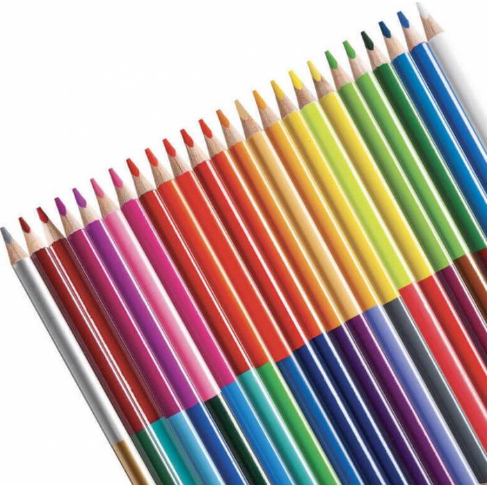 Ξυλομπογιές σε σετ 12 τεμαχίων με διπλή μύτη μπρος πίσω για περισσότερη ευκολία και εξοικονόμηση χώρου. Περιλαμβάνει 24 χρώματα με μύτη πάχους 3.3mm. *Ακατάλληλο για παιδιά κάτω των 3 ετών. Περιέχει μέρη που μπορεί να καταποθούν.
