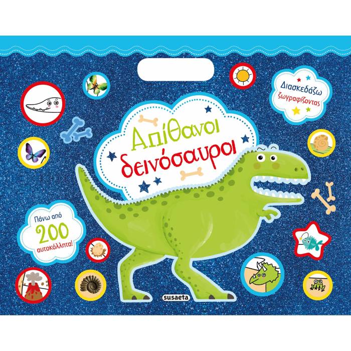 Λατρεύεις τους δεινόσαυρους; Αν ναι, δεν έχεις παρά να πάρεις τις ξυλοµπογιές, τις κηροµπογιές ή τους µαρκαδόρους σου και να γεµίσεις µε χρώµατα και αυτοκόλλητα τις σελίδες αυτού του βιβλίου! Εδώ θα βρεις µερικές από τις πιο διάσηµες τροµερές σαύρες και άλλα προϊστορικά ζώα σε απίθανα σκηνικά που, αφού τα χρωµατίσεις, µπορείς να τα κολλήσεις στο δωµάτιό σου!