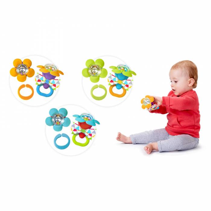 - Πολύχρωμη, διαφόρων υφών κουδουνίστρα που περιλαμβάνει πιπίλα οδοντοφυιας και χάντρες, ενώ η πίσω μεριά αντανακλά το φως. Ιδανική για να απασχολείται το μωρό κουνώντας, μασουλώνας και γενικά εξερευνώντας την.