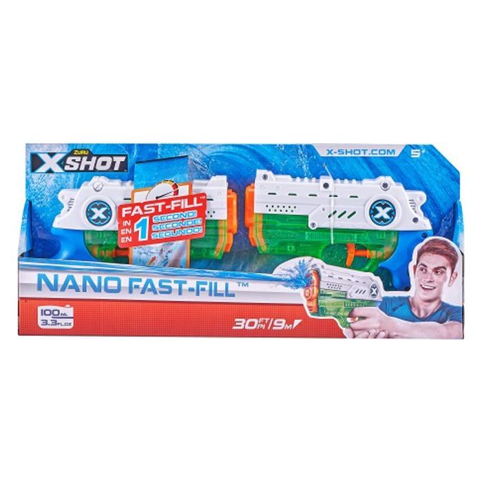 Απλά βυθίστε και γεμίστε σε 1 δευτερόλεπτο με τεχνολογία ταχείας σφράγισης. Η επαναγεμιζόμενη δεξαμενή νερού σας επιτρέπει να φορτίζετε γρήγορα το blaster σας με έως και 100ml/3.3fl.oz. Εκτοξεύει νερό έως και 9m.Περιλαμβάνονται 2 x Nano Fast-Fill.